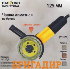 Сегментная чашка алмазная по бетону 125 мм зачистная шлифовальная Diamond Industrial DIDCH125S. Высота алмазного сегмента 6 мм, диаметр чашки 125 мм, посадочное отверстие 22.23 мм. Чашка используется для шлифования, зачищения и выравнивания поверхности из бетона, кирпича и камня. Корпус изделия изготовлен из прочной сбалансированной металлической основы. Шлифующими элементами являются наваренные стыковым способом алмазные сегменты. Оснастка не нуждается в принудительном охлаждении.
